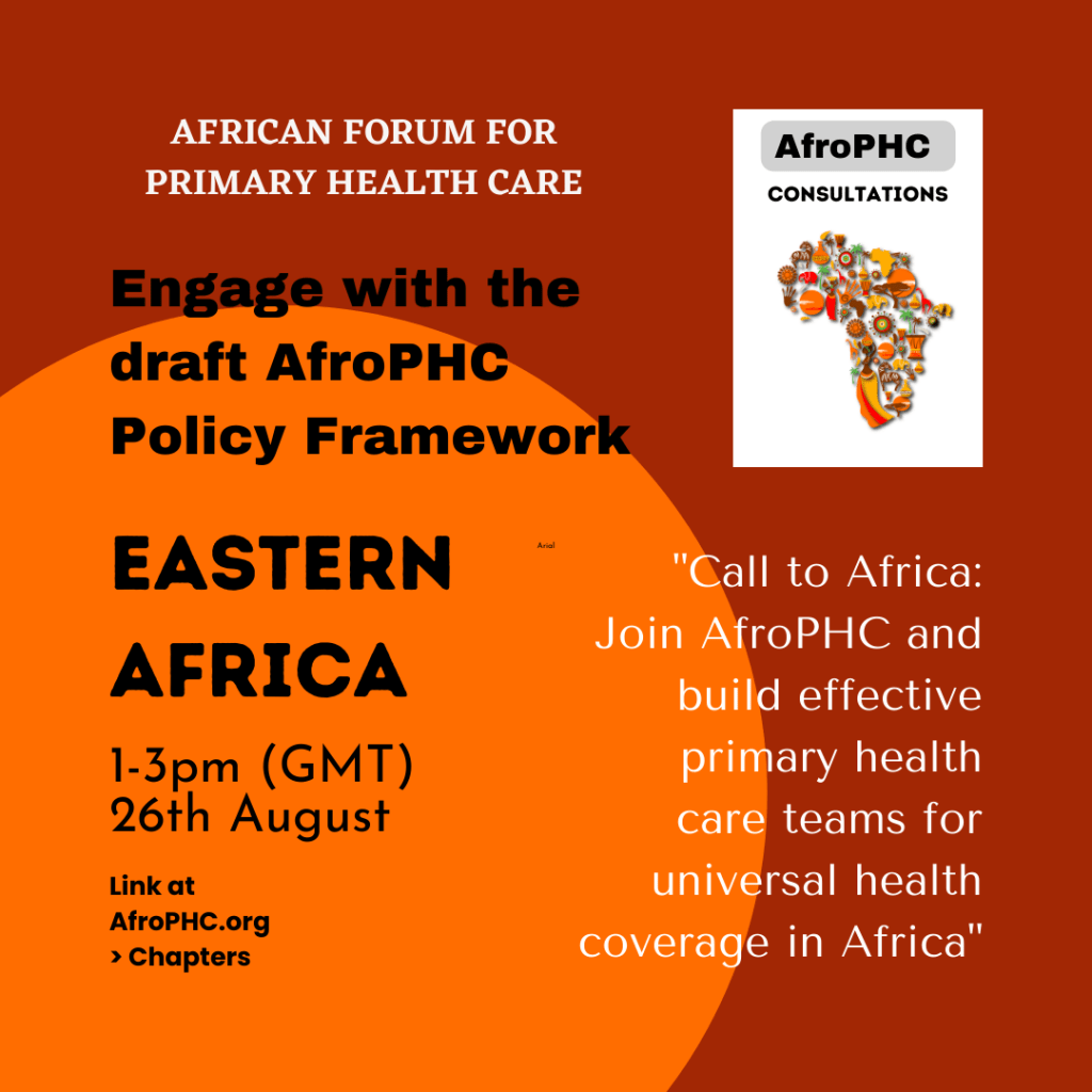 Join the AfroPHC Eastern Africa WhatsApp group and engage in discussions before and after our consultations https://chat.whatsapp.com/KFY9v0jLGIy8o71uZfWUdy See more here [https://atomic-temporary-69625775.wpcomstaging.com/chapters/]. We are very keen that as many local stakeholders participate. These include professional associations, ministries of health, accreditation / certification bodies, academics, patient advocacy groups etc. Please feel free to share this email to any key stakeholders you think should be there and ask them to join us to discuss AfroPHC and the Policy Framework