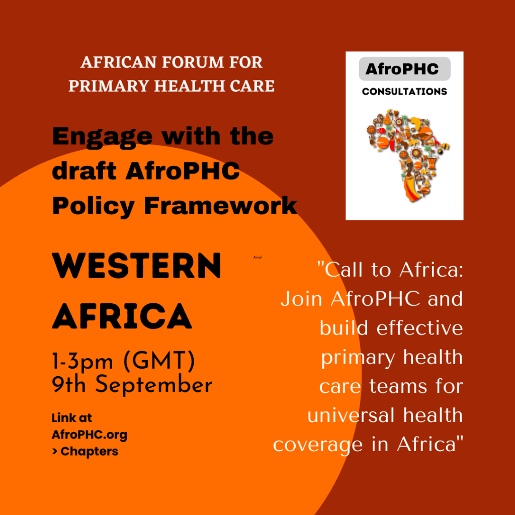 We are very keen that as many local stakeholders participate. These include professional associations, ministries of health, accreditation / certification bodies, academics, patient advocacy groups etc. Please feel free to share this email to any key stakeholders you think should be there and ask them to join us to discuss AfroPHC and the Policy Framework.